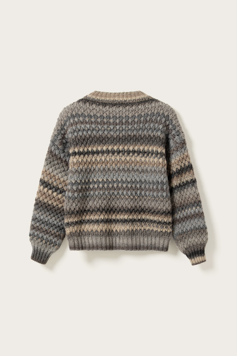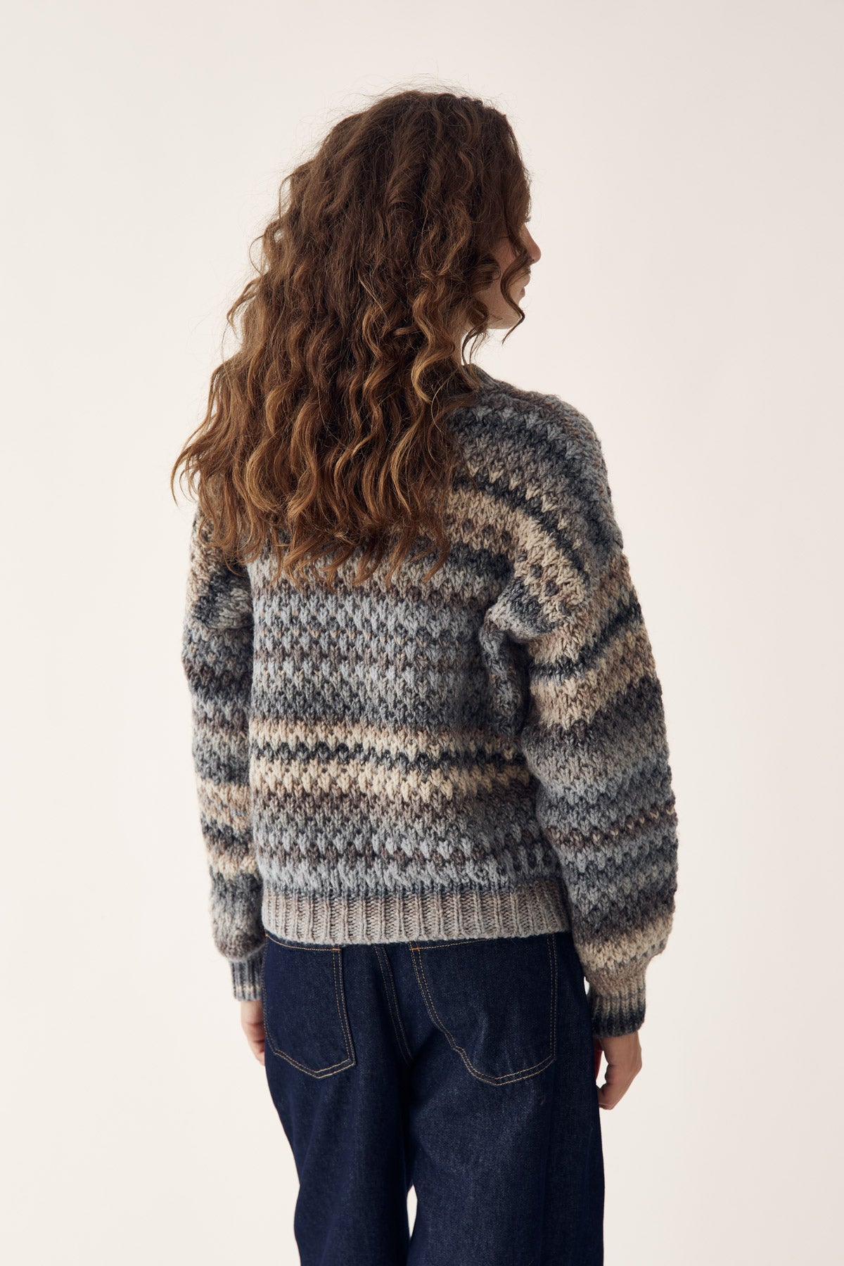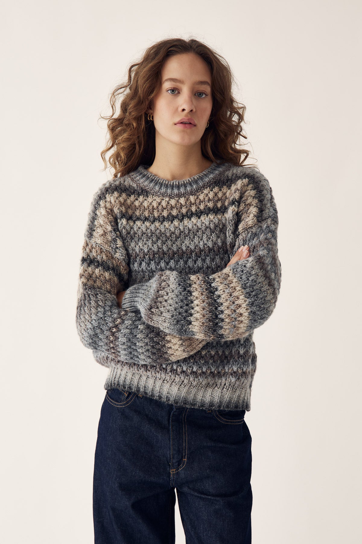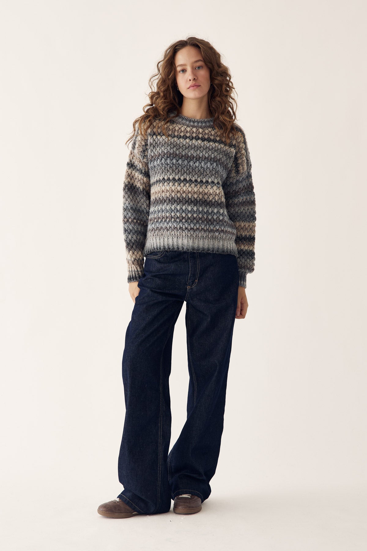 Gio Knit Sweater er loose sweater lavet i 53 uld. Hvert produkt er unikt på grund af indfarvningsprocessen af garnet, som kan skabe variationer fra produktion til produktion.