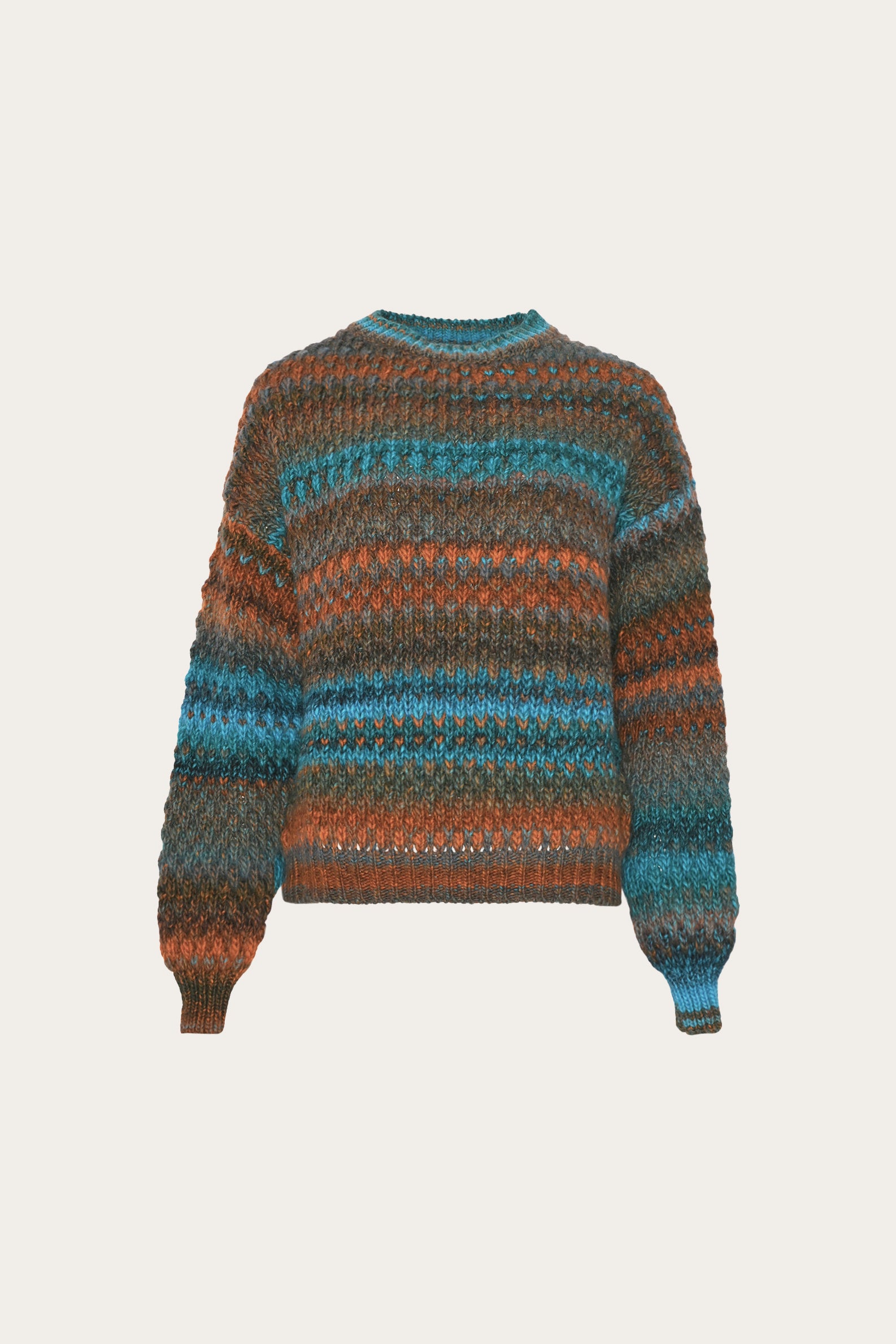 Gio Knit Sweater er loose sweater lavet i 53 uld. Hvert produkt er unikt på grund af indfarvningsprocessen af garnet, som kan skabe variationer fra produktion til produktion.
