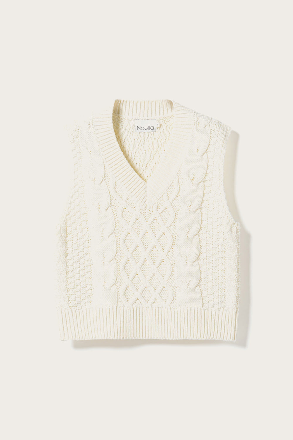 Gio Knit Vest er en strikvest med kabelmønster og V-hals.