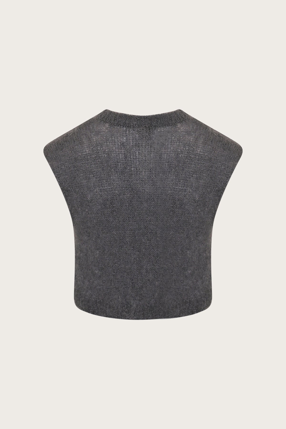 Lelia Knit er en slipover strikvest uden ærmer med rund hals og så har den et loose fit.