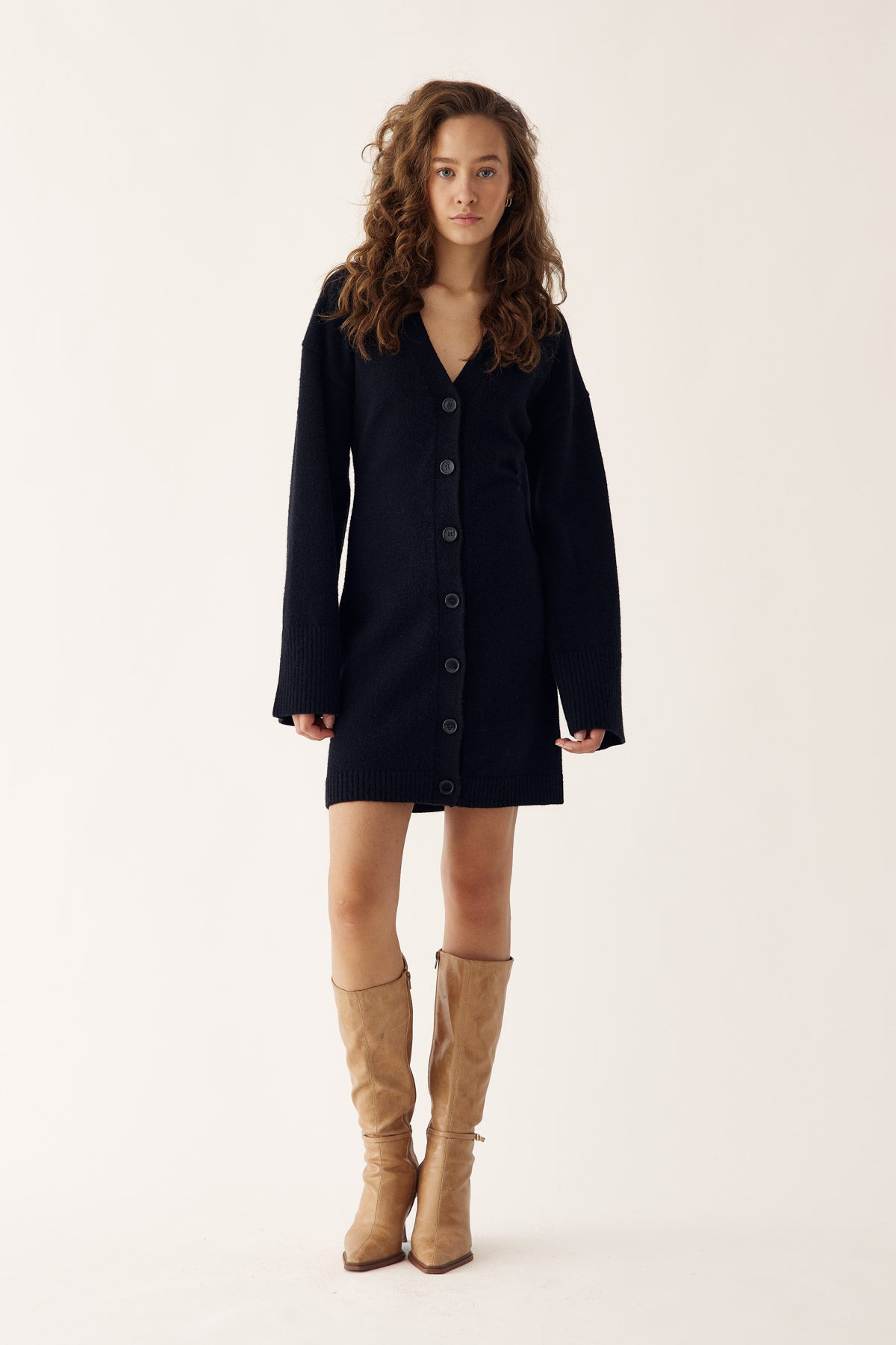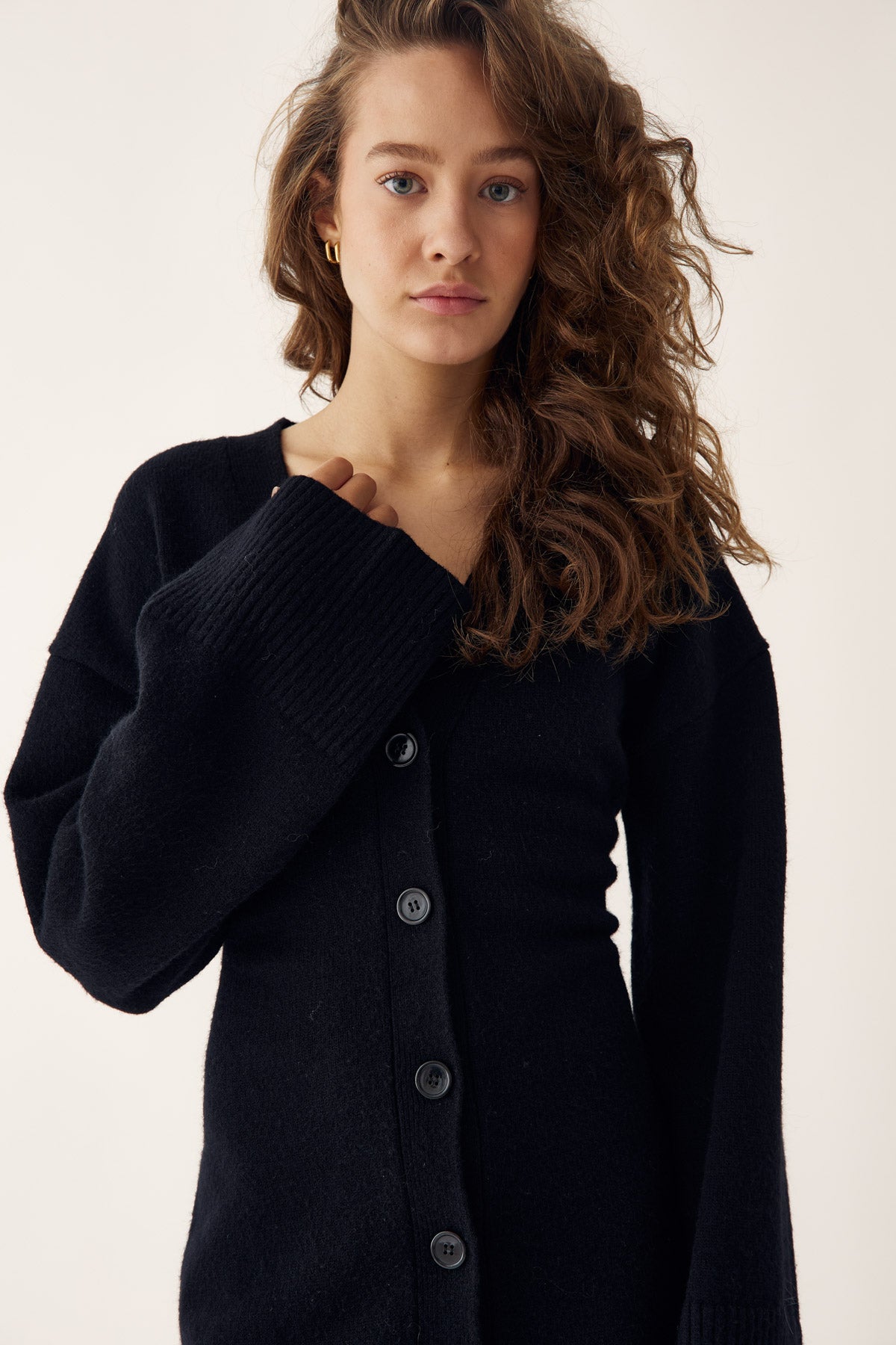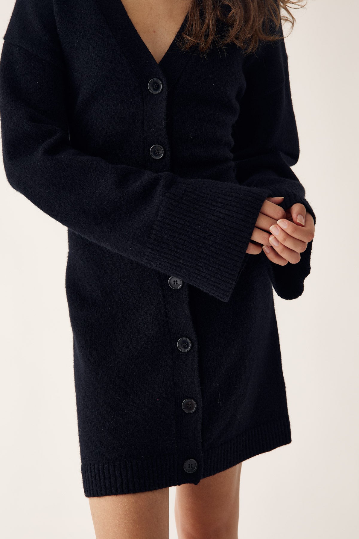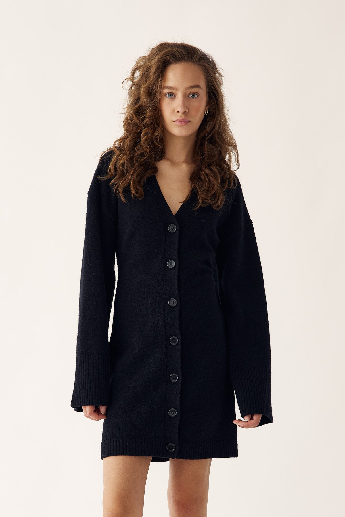 Lenyxanna Knit Dress er en cardigankjole med en fitted pasform, lange volumniøse ærmer og knappelukning foran.