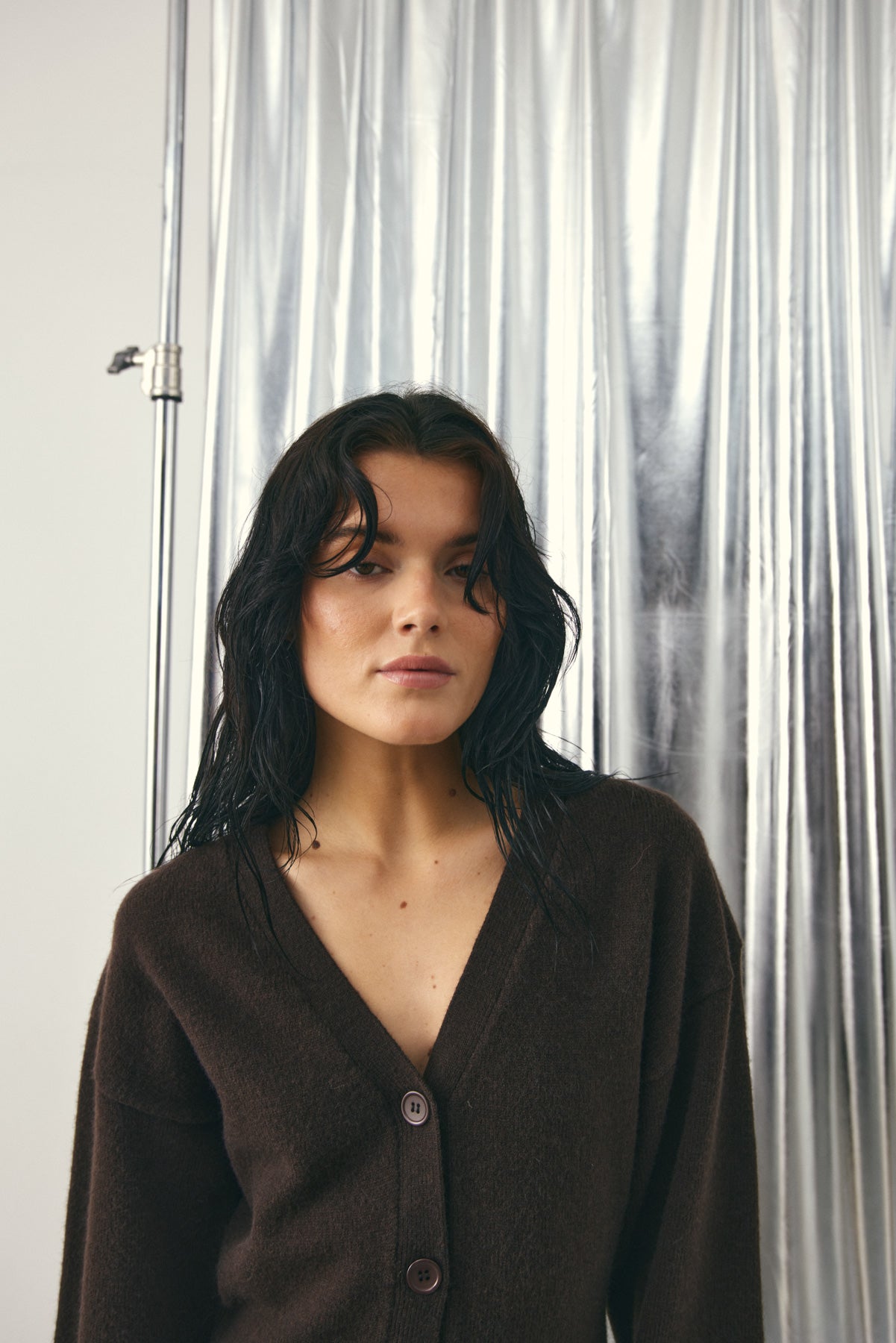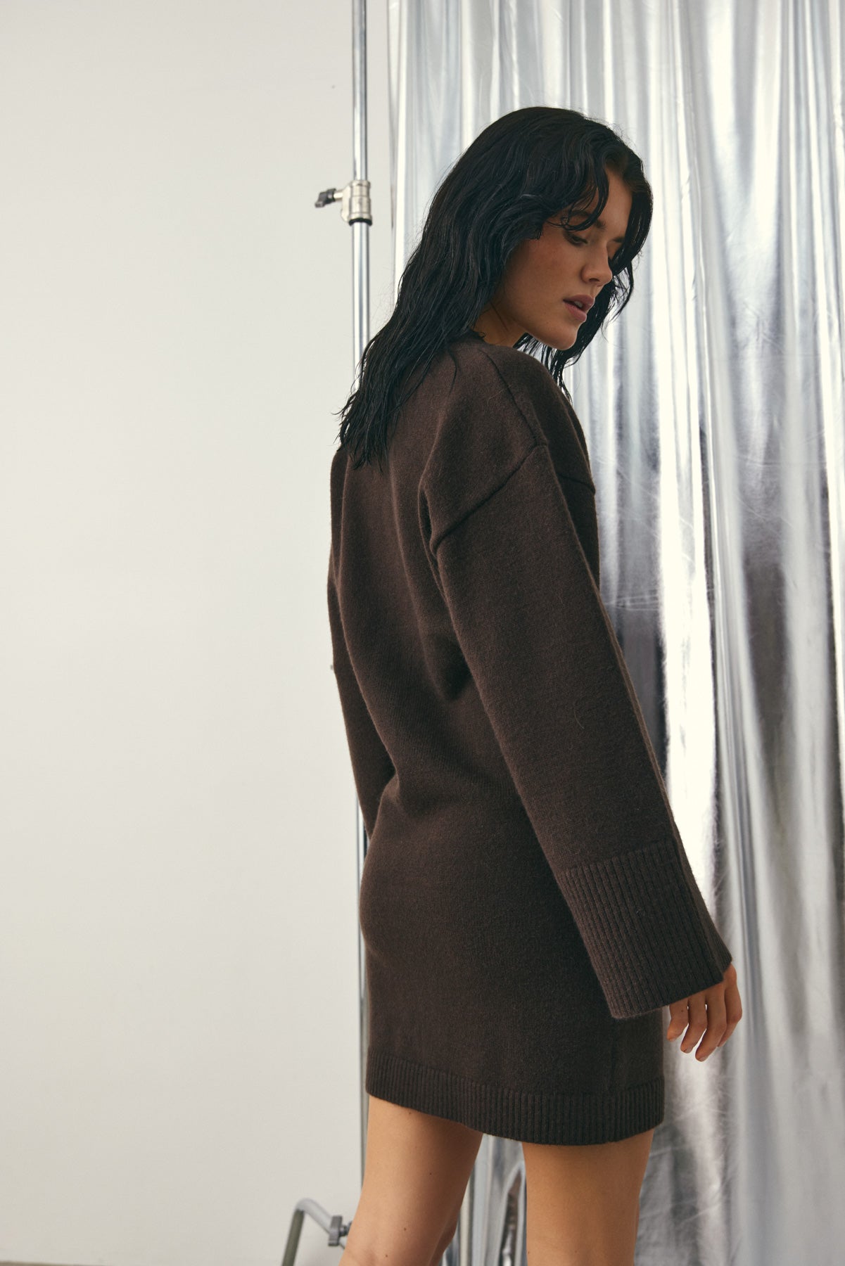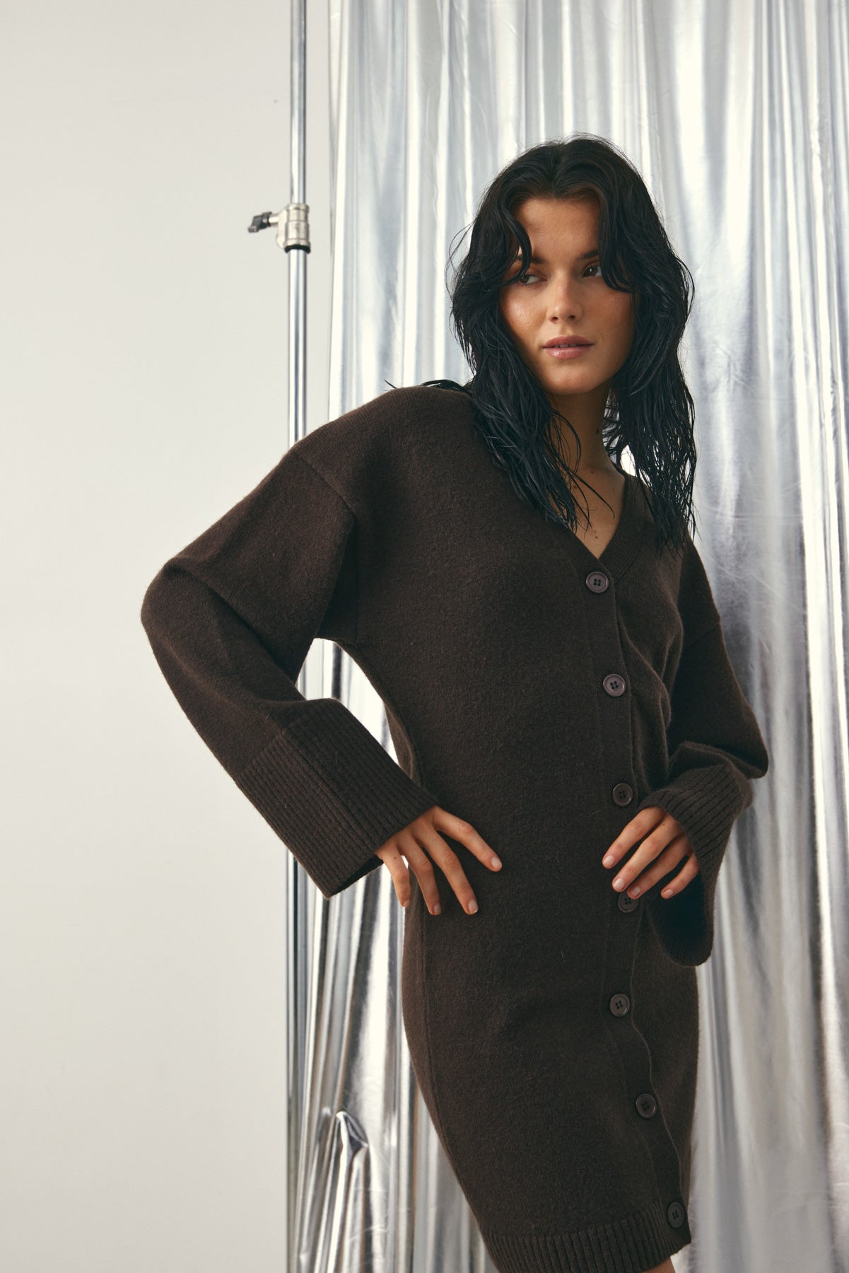 Lenyxanna Knit Dress er en cardigankjole med en fitted pasform, lange volumniøse ærmer og knappelukning foran.