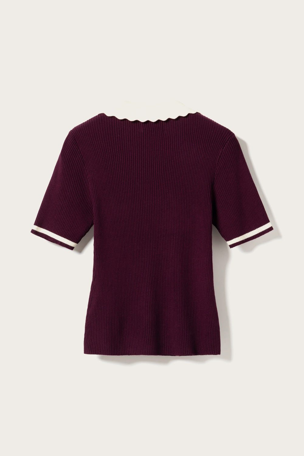Lilo Polo Knit er en strikpolo i 100 viskose med korte ærmer, rib og kontrastkrave i hvid. Pasformen er klassisk med et enkelt og tidsløst design. Lilo Polo giver et romantisk udtryk, med kraven som er lavet i en bølget struktur. Brug Lili Polo som en del af et every-day outfit.