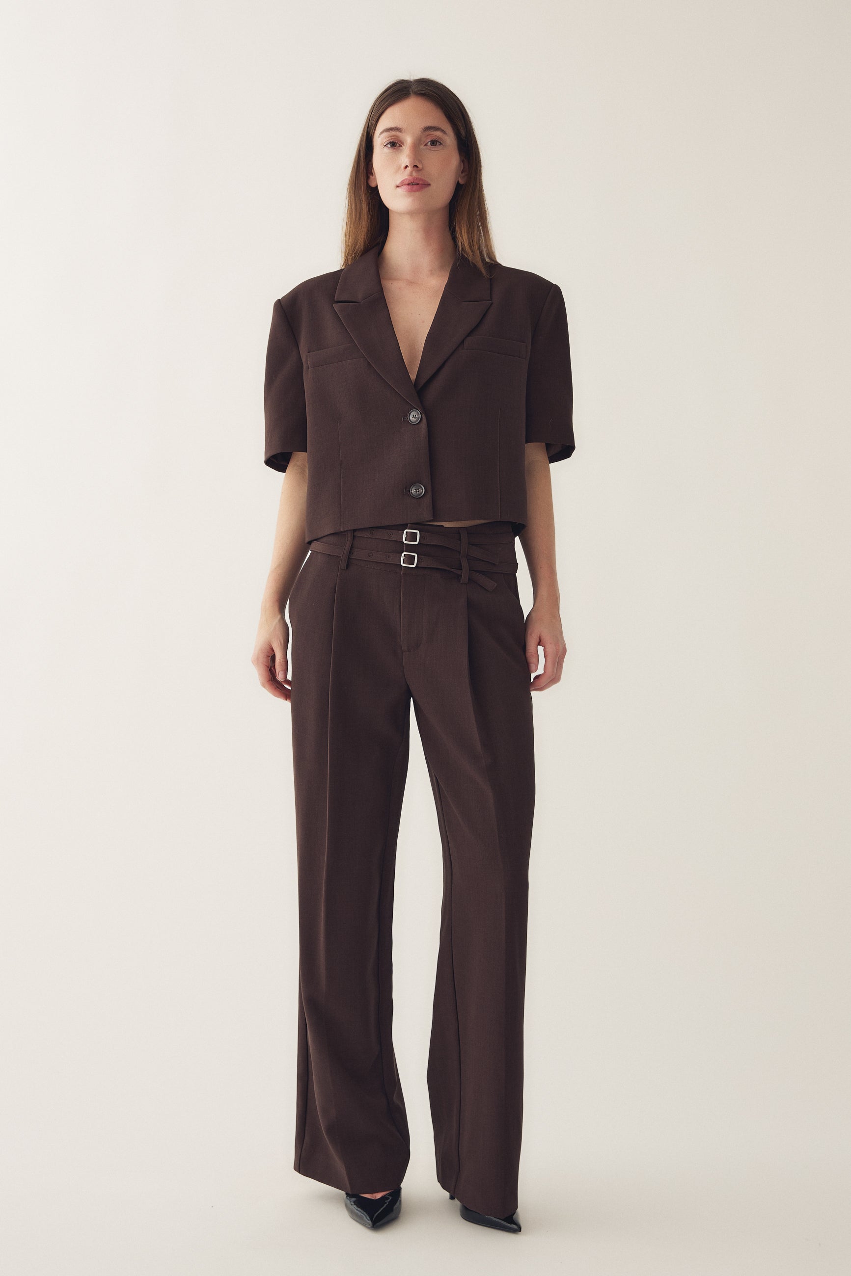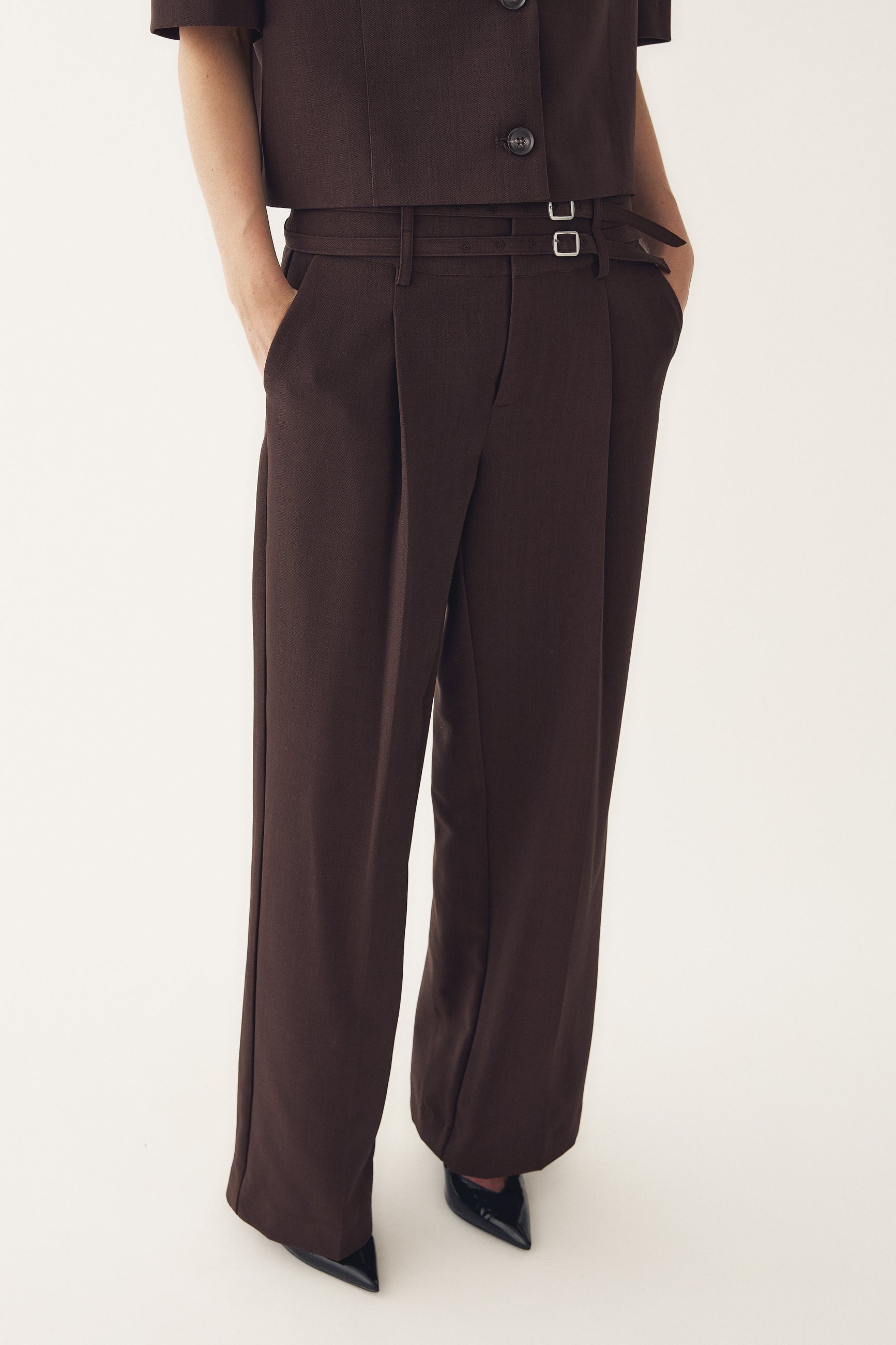 N-Darryl HW Pants er et par højtaljede bukser med vide ben, bæltestropper og to smalle bælter, der giver et stilfuldt og tilpasset look.