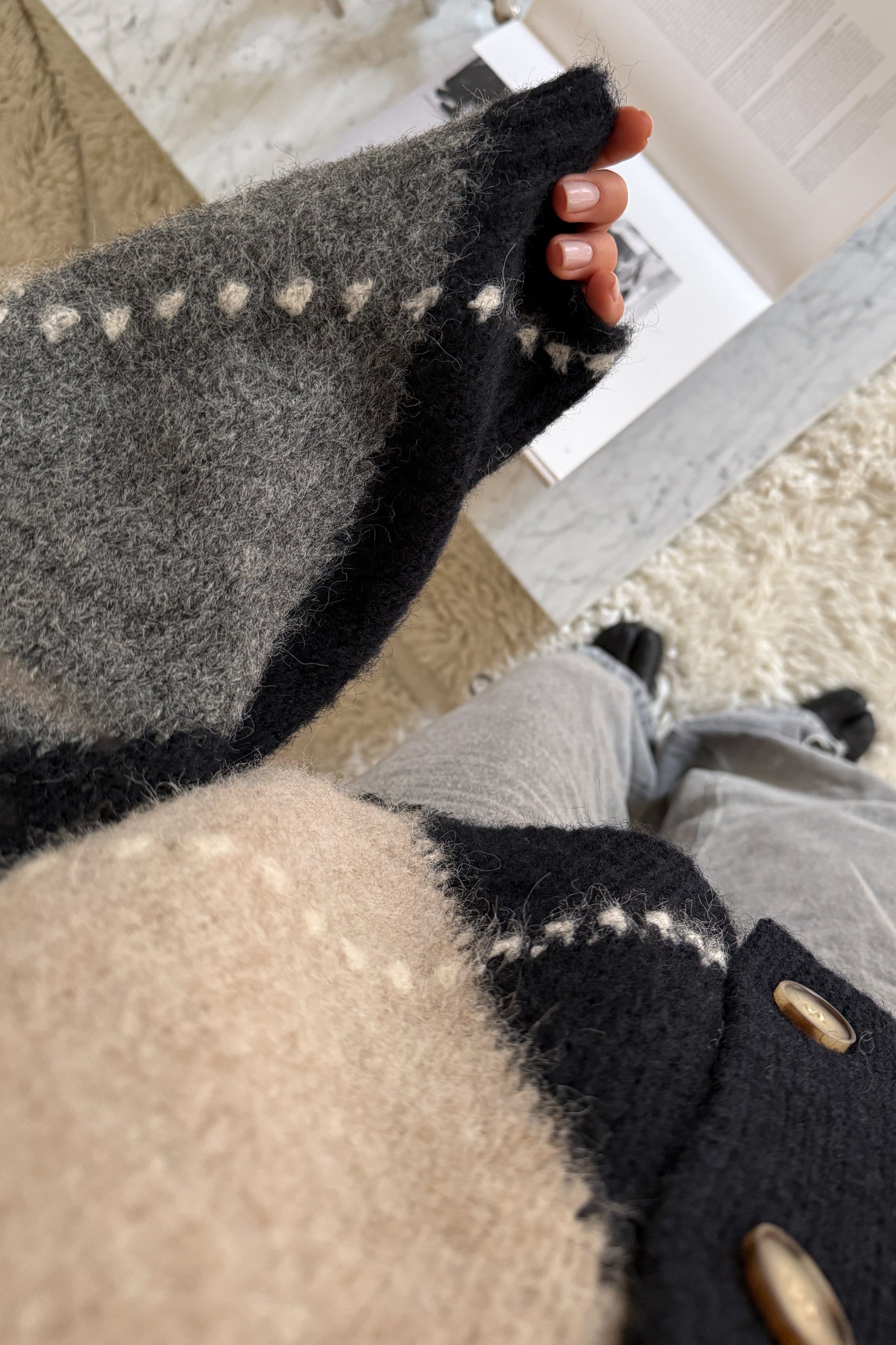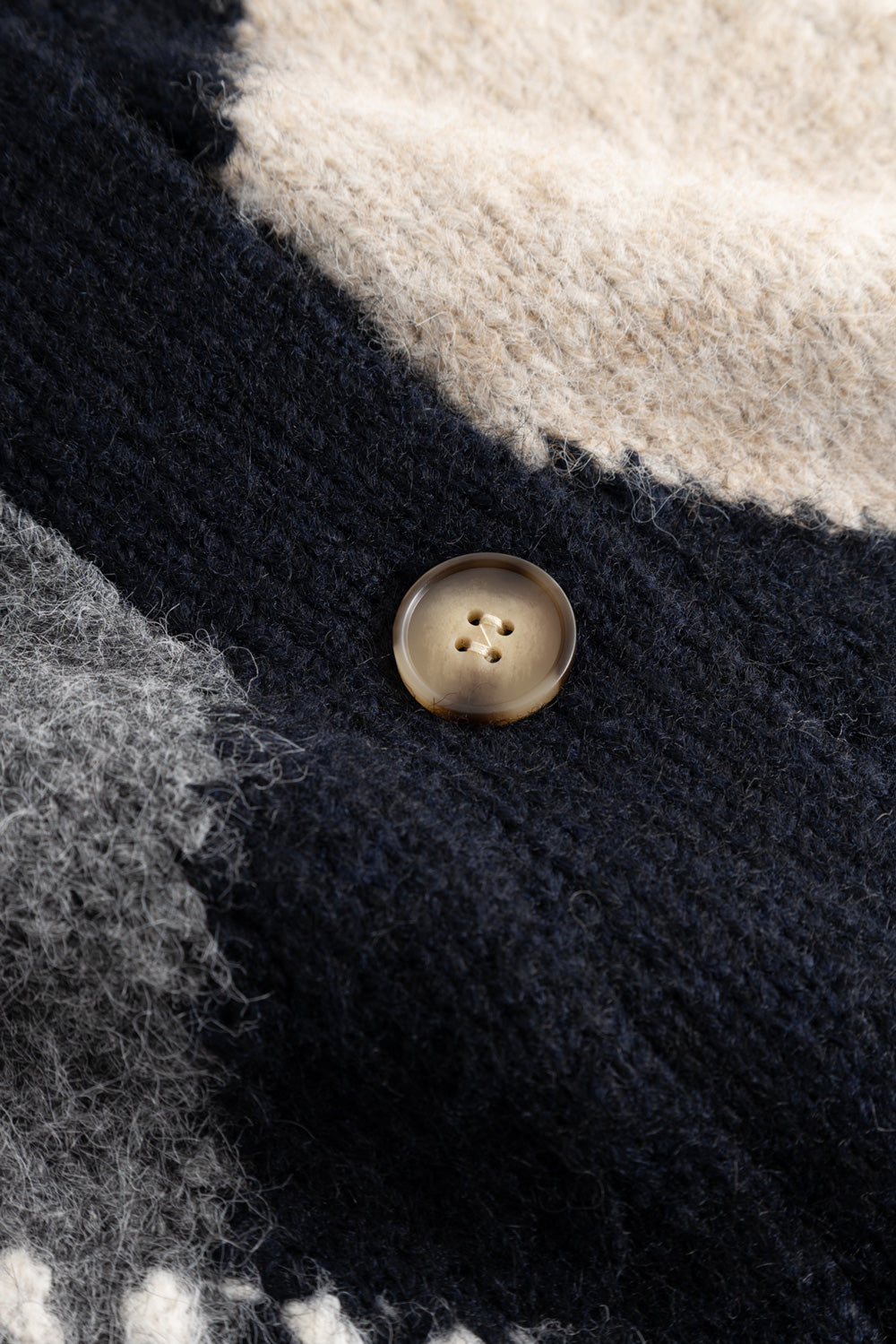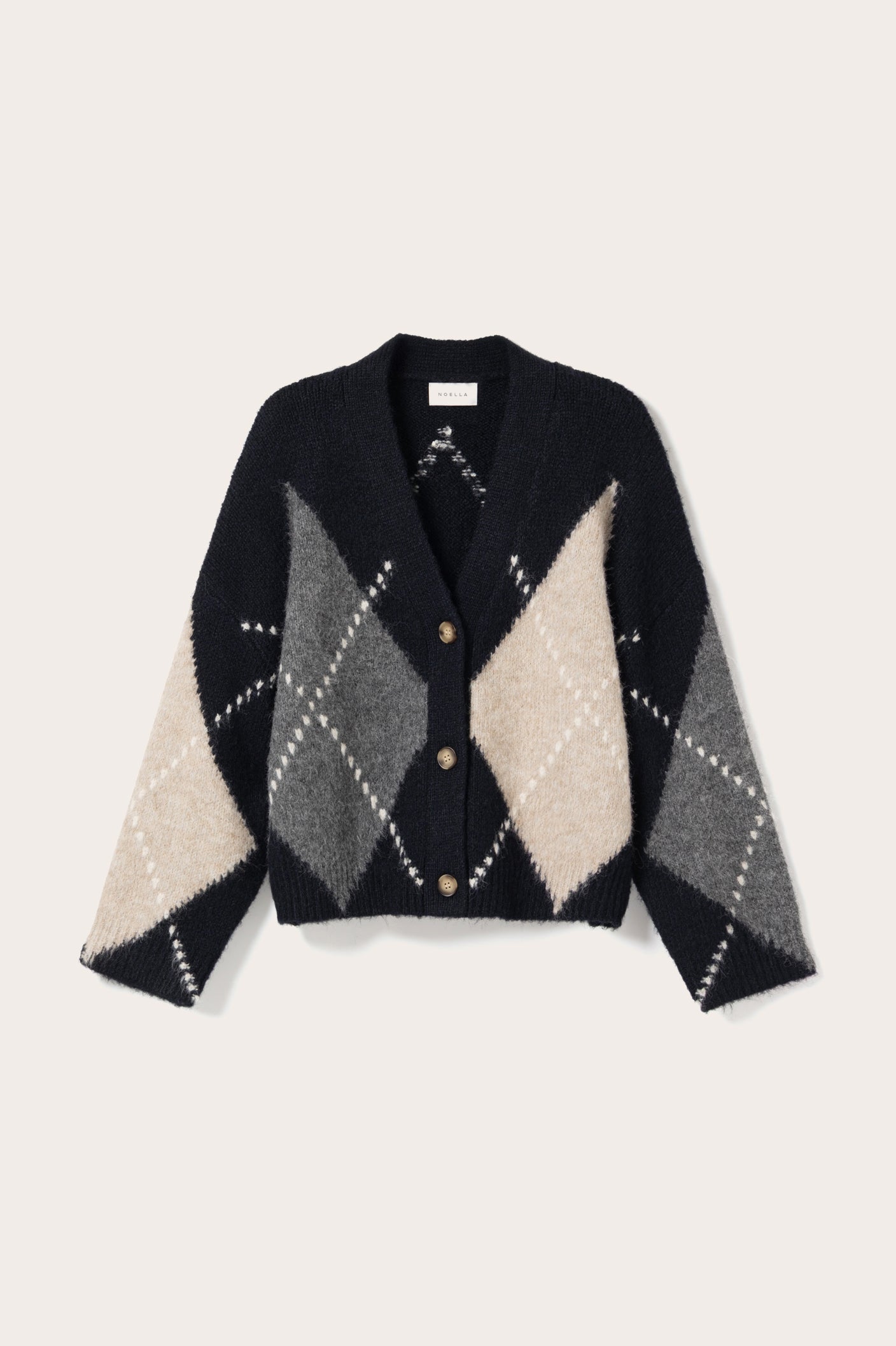 N-Laiana Knit Cardigan er en oversized cardigan med Argyle-print. N-Laiana Knit Cardigan har en løs pasform, med lange vidde ærmer og en kortere længde. Argyle-printet giver cardiganen et klassisk og eksklusivt look, som er perfekt at style til efterårets mange trends. Et must-have i garderoben!