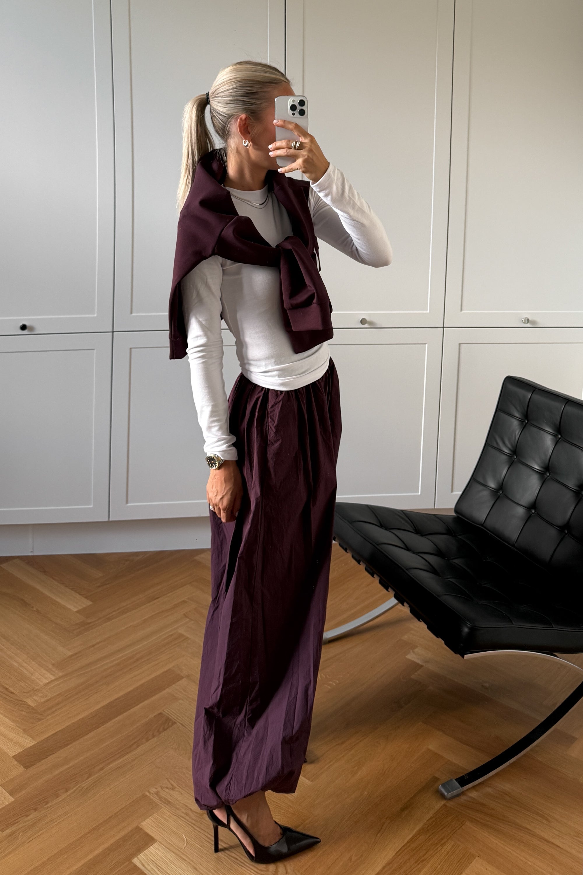 N-Minerva Pants er et par løse bukser med en stram elastik i taljen og ved benåbningerne, som skaber en stilfuld balloneffekt.